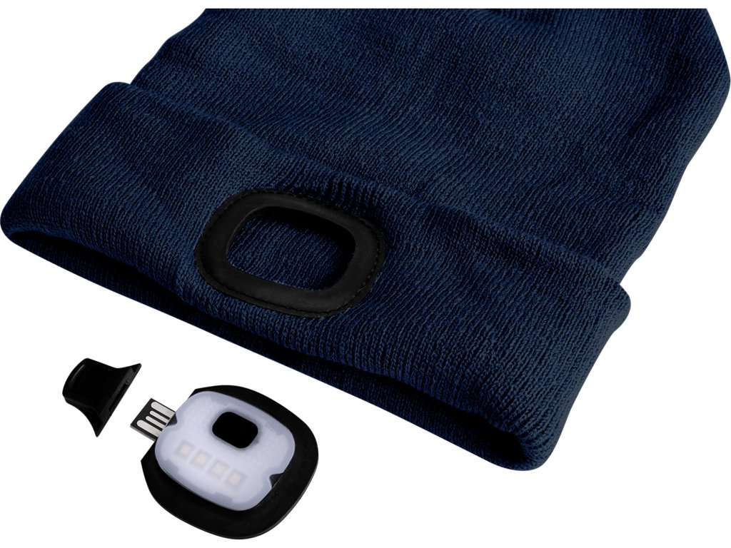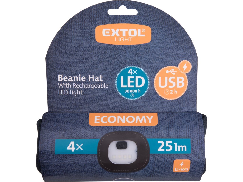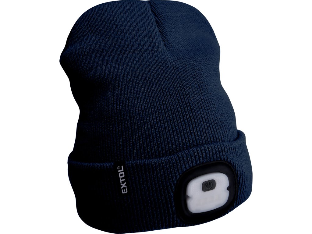 čepice s čelovkou 4x25lm, USB nabíjení, tmavě modrá, ECONOMY, univerzální velikost, 100% acryl