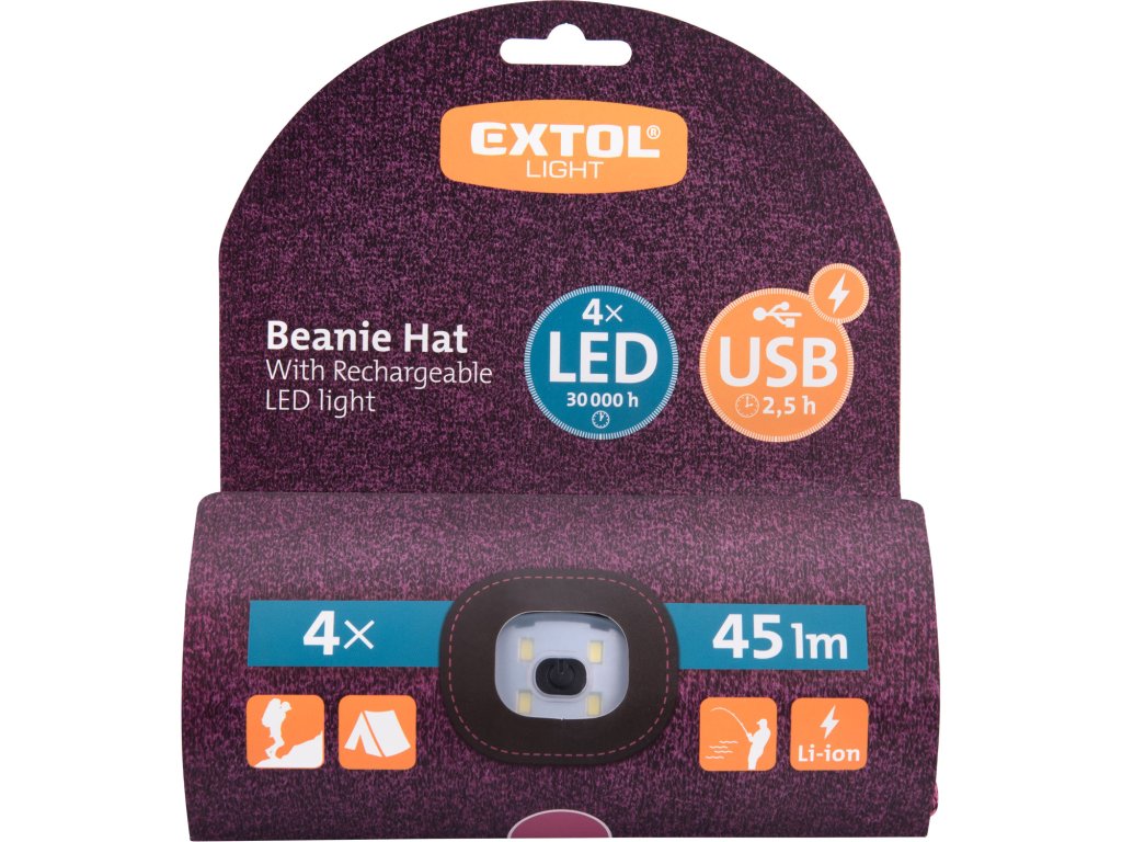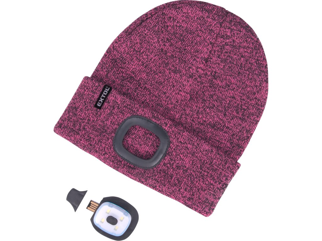 čepice s čelovkou 4x45lm, USB nabíjení, fialová/černá, univerzální velikost, 100% acryl